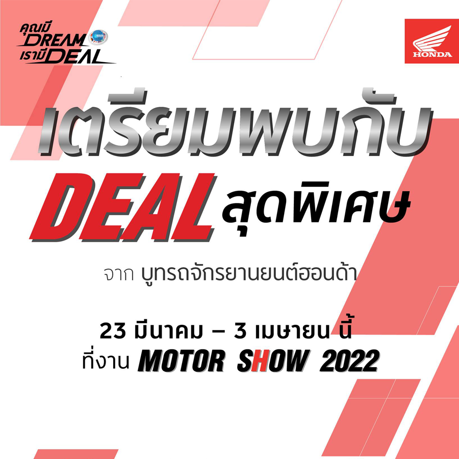 เตรียมพบกับการเผยโฉมรถรุ่นใหม่จาก AP Honda ที่จะเปิดตัวให้เห็นของจริงกันเป็นที่แรก จากบูทรถจักรยานยนต์ฮอนด้า ที่พร้อมจะกระตุ้น Dream จนคุณอยากจับจองเป็นเจ้าของ เพื่อที่จะได้ออกไปขี่ทำตามความฝันก่อนใคร!