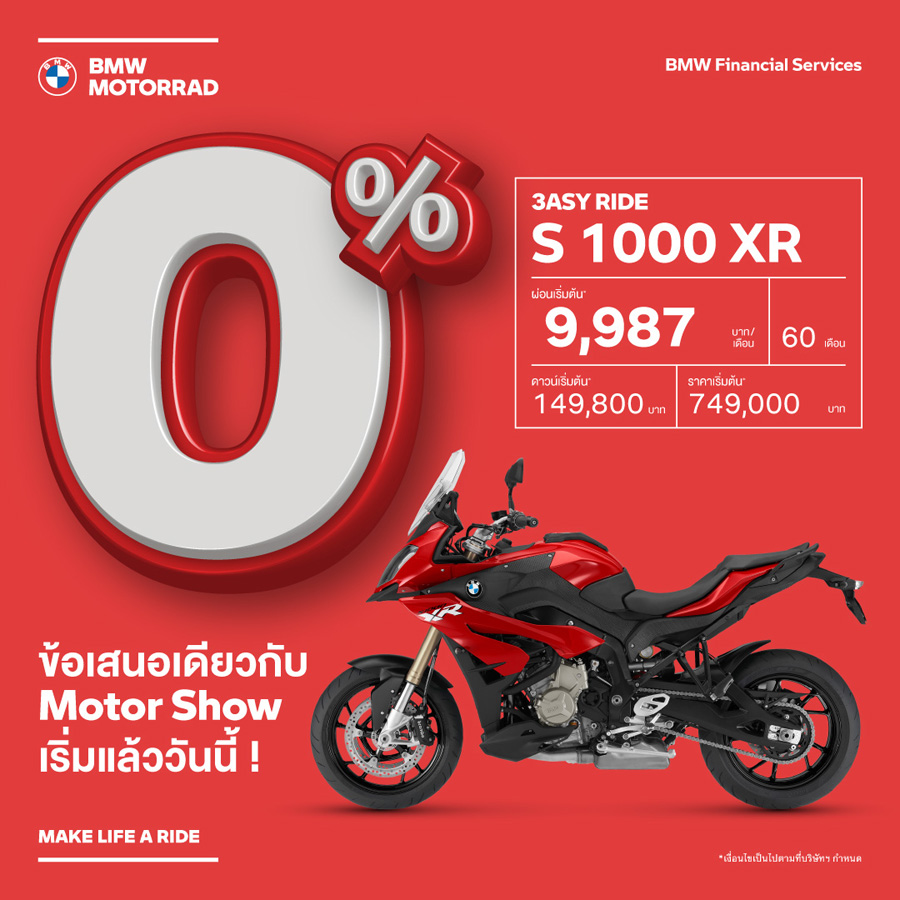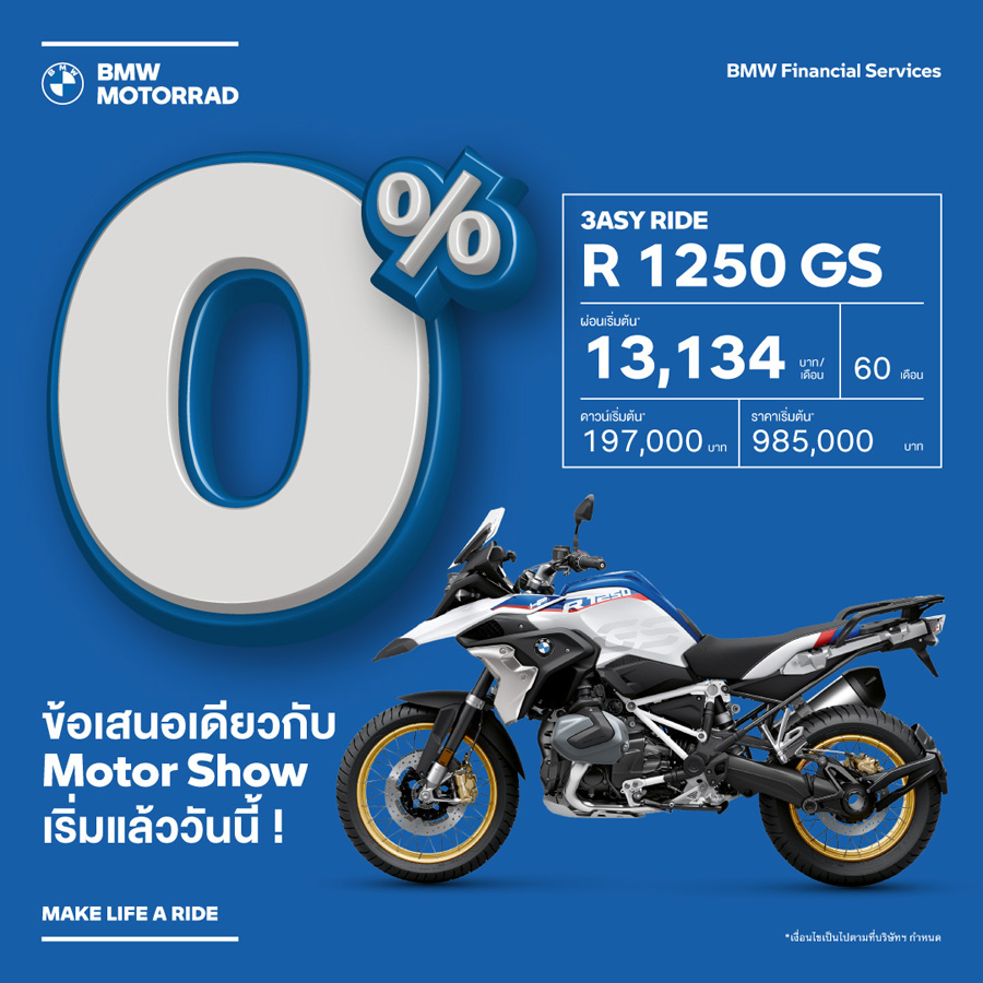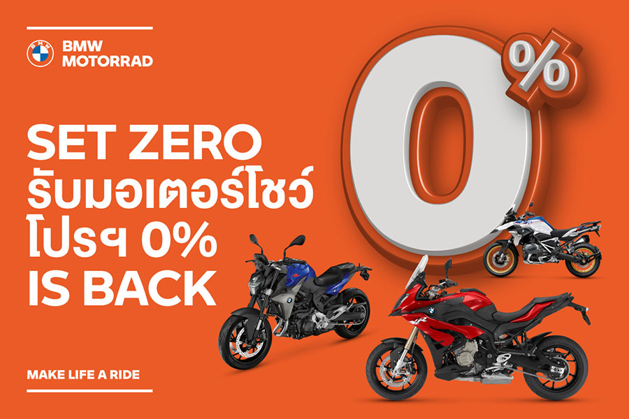 SET ZERO กับโปรโมชันพิเศษต้อนรับ Motor Show ตลอดเดือนมีนาคมนี้ ให้คุณเป็นเจ้าของ BMW Motorrad ได้ง่ายยิ่งขึ้นด้วยดอกเบี้ย 0% นานสูงสุด 5 ปี*