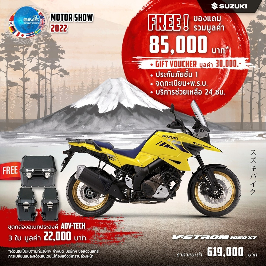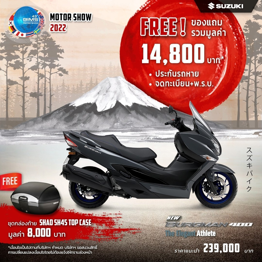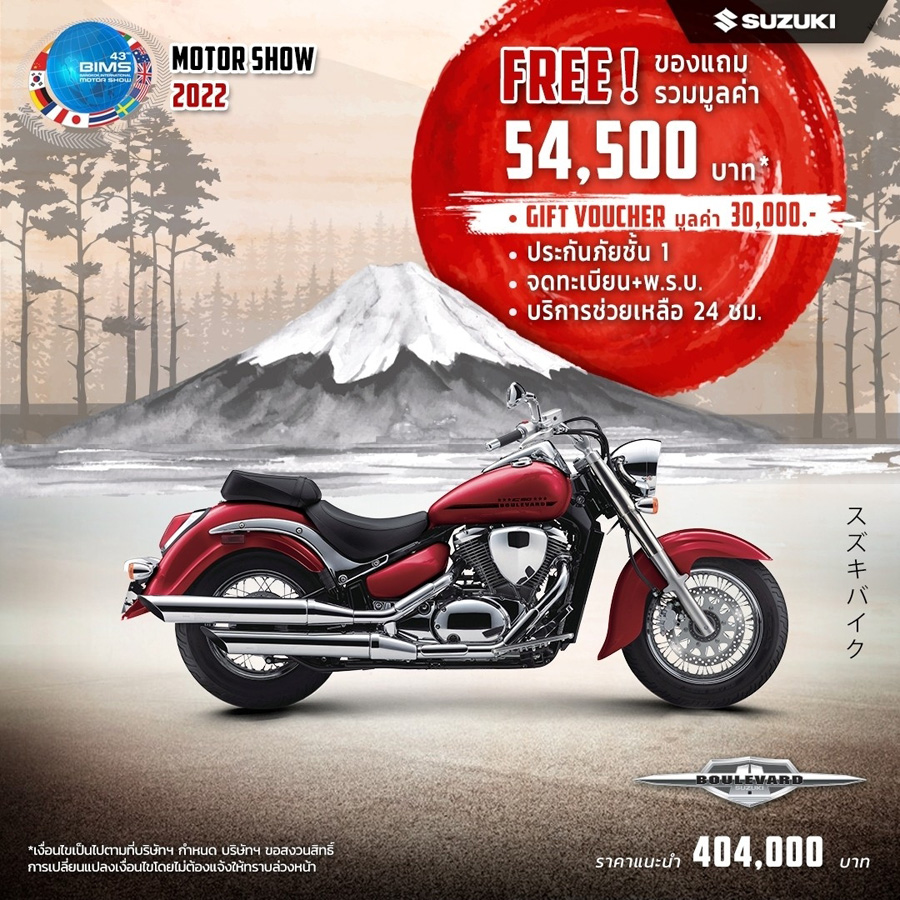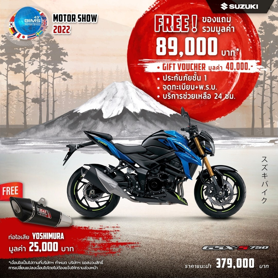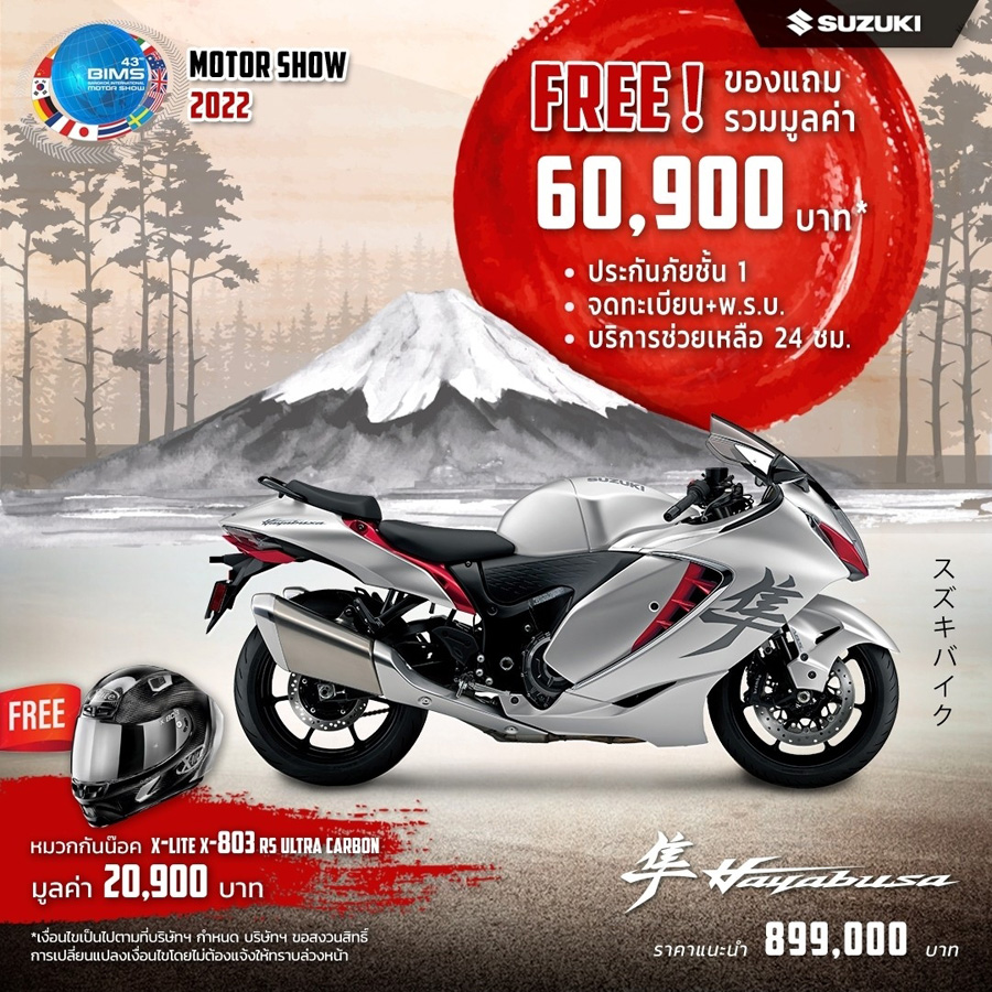 SUZUKI จัดโปรโมชั่นท้าลมร้อน! ต้อนรับ Motor Show 2022 เอาใจไบค์เกอร์แบบเต็ม ๆ กับรถมอเตอร์ไซค์ทุกแนวทุกสไตล์ ตั้งแต่วันนี้ - 30 เม.ย. 2565 โดยมาพร้อมกับโปรโมชั่นไฮไลท์โปรโมชั่นเด่น ๆ ได้แก่