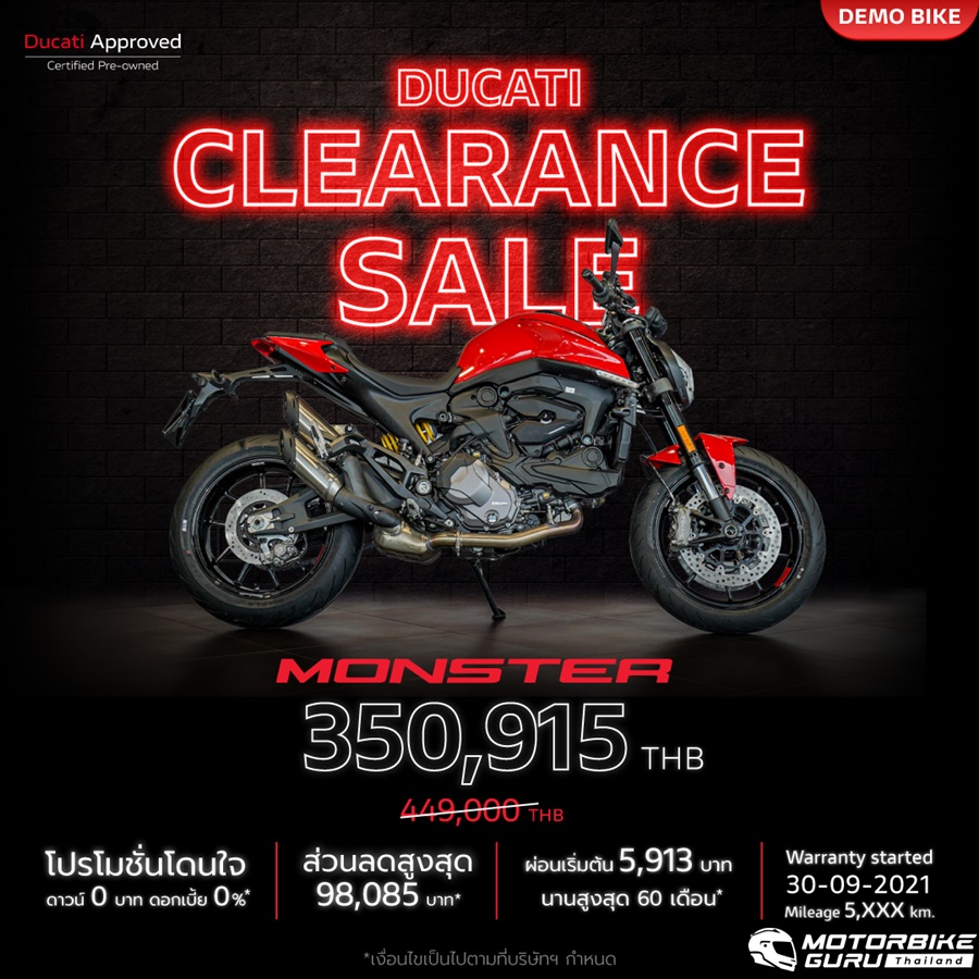 • Monster 937 ราคาเริ่มต้น 350,915 บาท (จากราคา 449,000 บาท) ผ่อนเริ่มต้น 5,913 บาท/เดือน