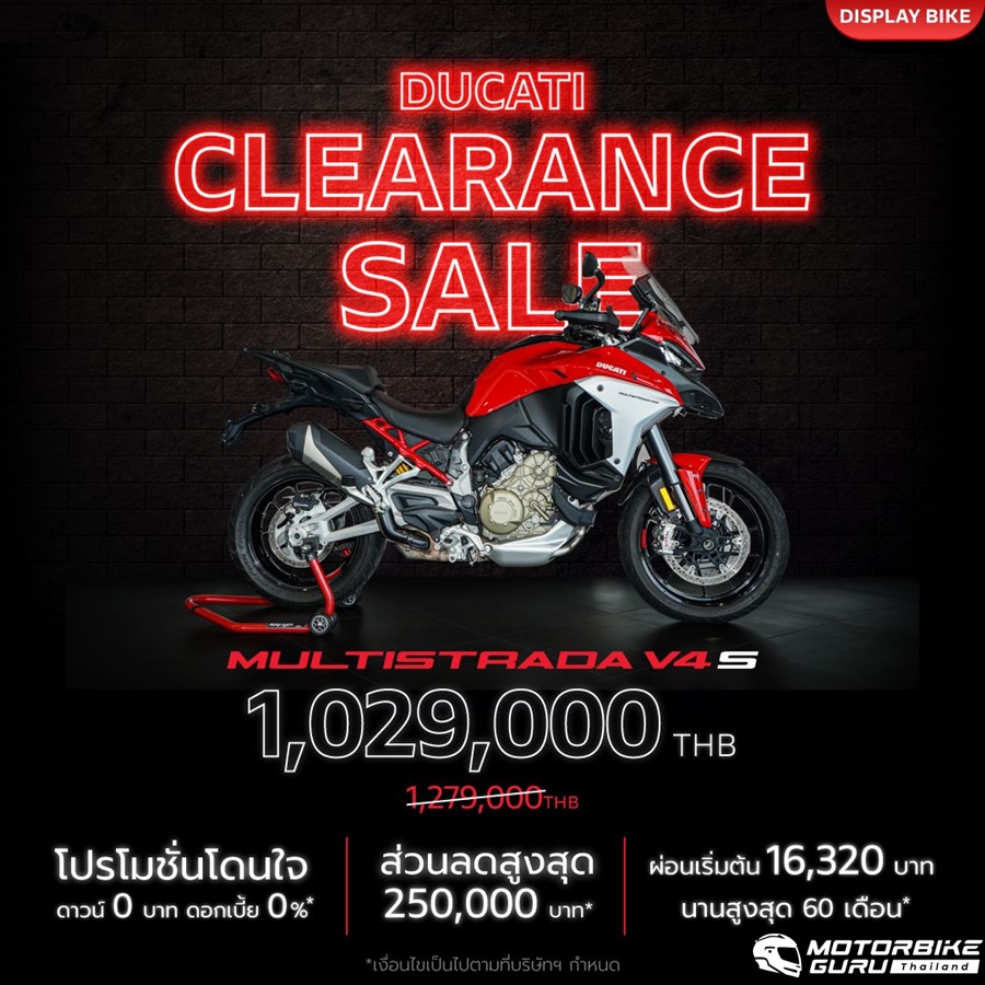 • Multistrada V4S ราคาเริ่มต้นเพียง 1,029,000 บาท จากเดิมราคา 1,279,000 บาท