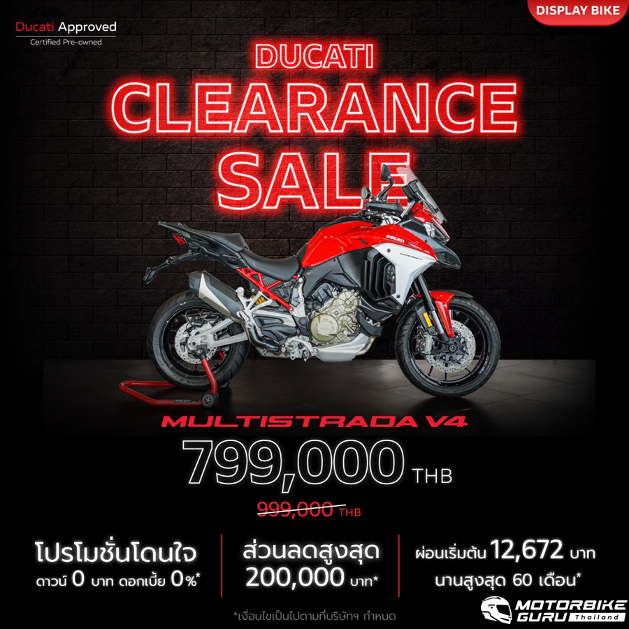 • Multistrada V4 ราคาเริ่มต้น 799,000 บาท จากเดิมราคา 999,000 บาท