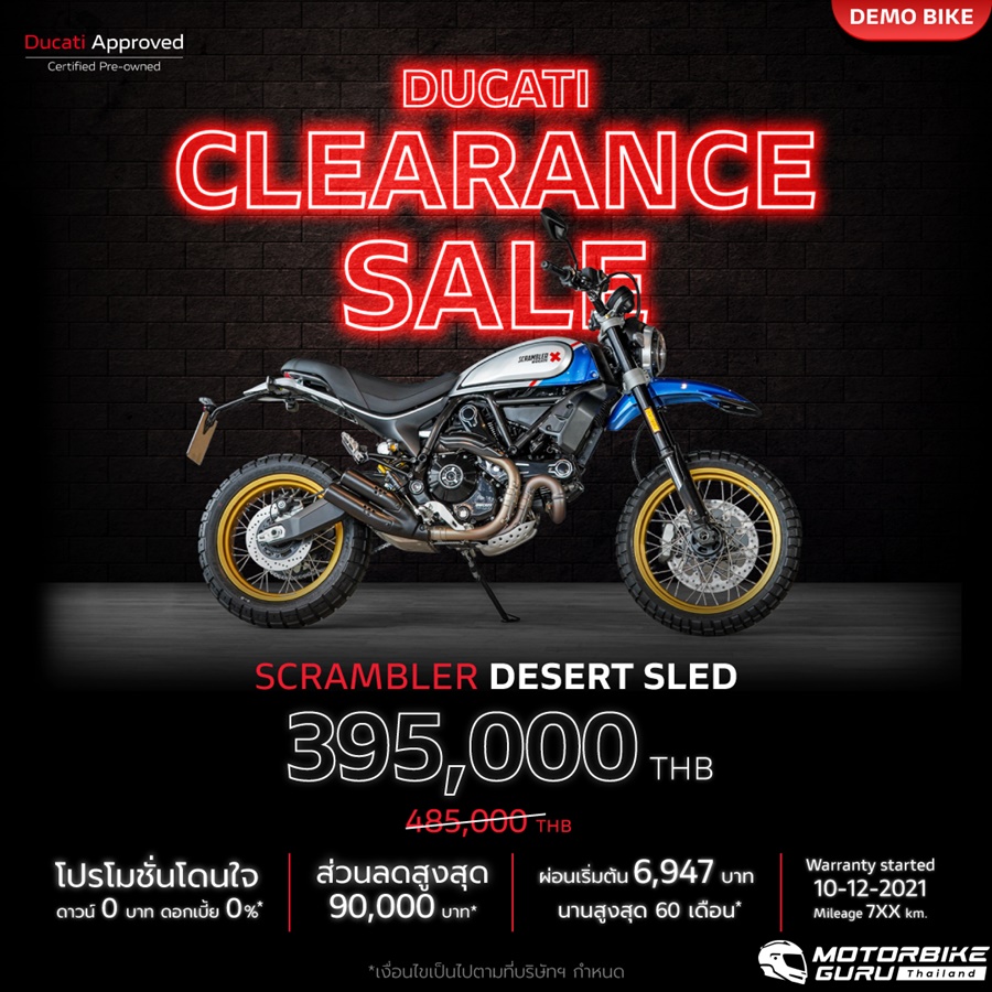 • Scrambler Desert Sled ราคาเริ่มต้น 395,000 บาท (จากราคา 485,000 บาท) ผ่อนเริ่มต้น 6,947 บาท/เดือน