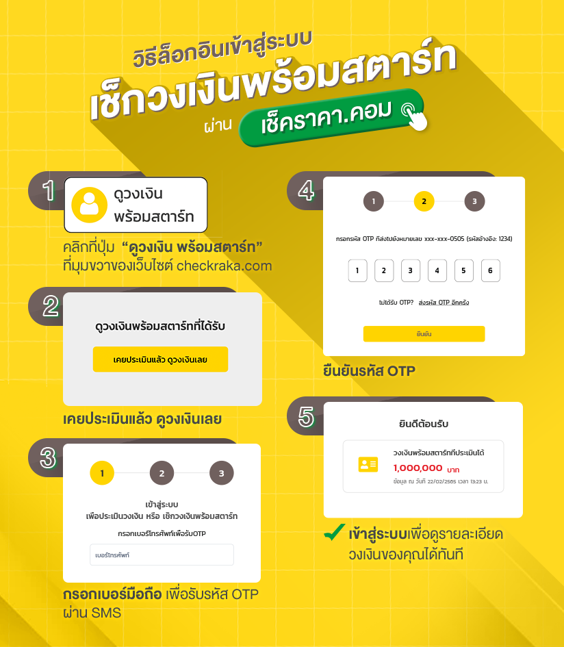 - รอรับ SMS แจ้งวงเงิน รู้ผลไวใน 3 นาที ไม่มีค่าใช้จ่ายใดๆ เพิ่มเติม