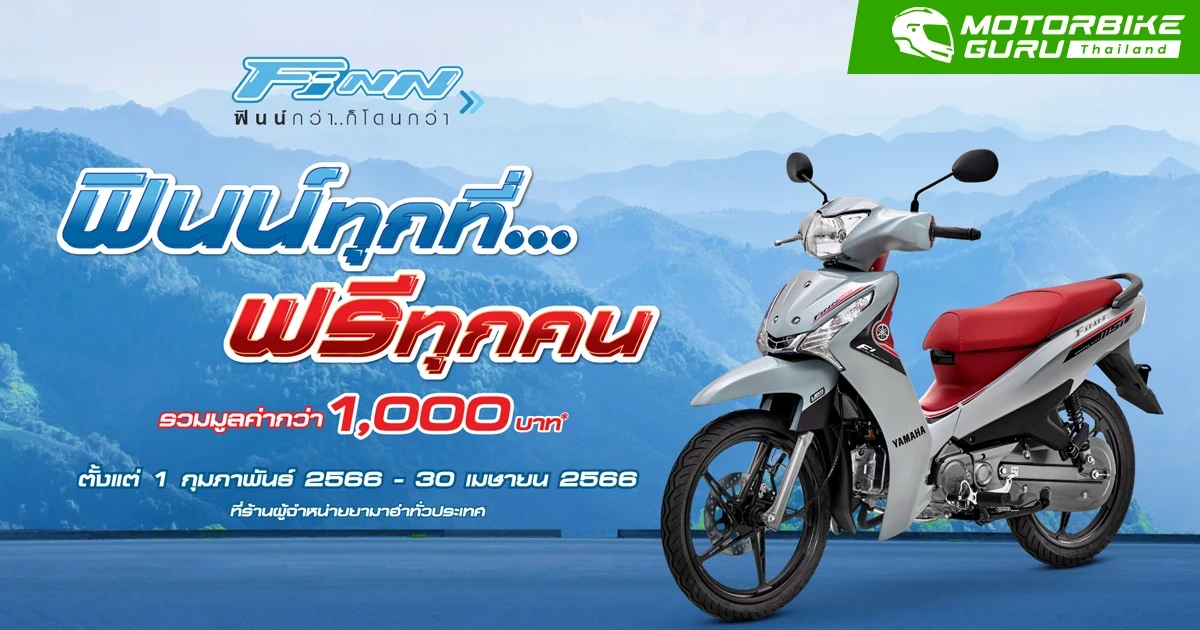 บริษัท ไทยยามาฮ่ามอเตอร์ จำกัด ผู้ผลิตและจำหน่ายรถจักรยานยนต์คุณภาพชั้นนำของประเทศ จัดโปรโมชันส่งเสริมการขายรถจักรยานยนต์ครอบครัวสุดประหยัด ฟินน์ทุกที่...ฟรีทุกคน เมื่อซื้อ ยามาฮ่าฟินน์ ระหว่างวันที่ 1 กุมภาพันธ์ – 30 เมษายน 2566 รับของแถมฟรีทันที 3 รายการ รวมมูลค่า 1,097 บาท ได้แก่ ตะกร้าหน้าแบบตาข่าย มูลค่า 239 บาท, กันลายแบบตาข่าย มูลค่า 168 บาท และตะแกรงหลัง มูลค่า 690 บาท