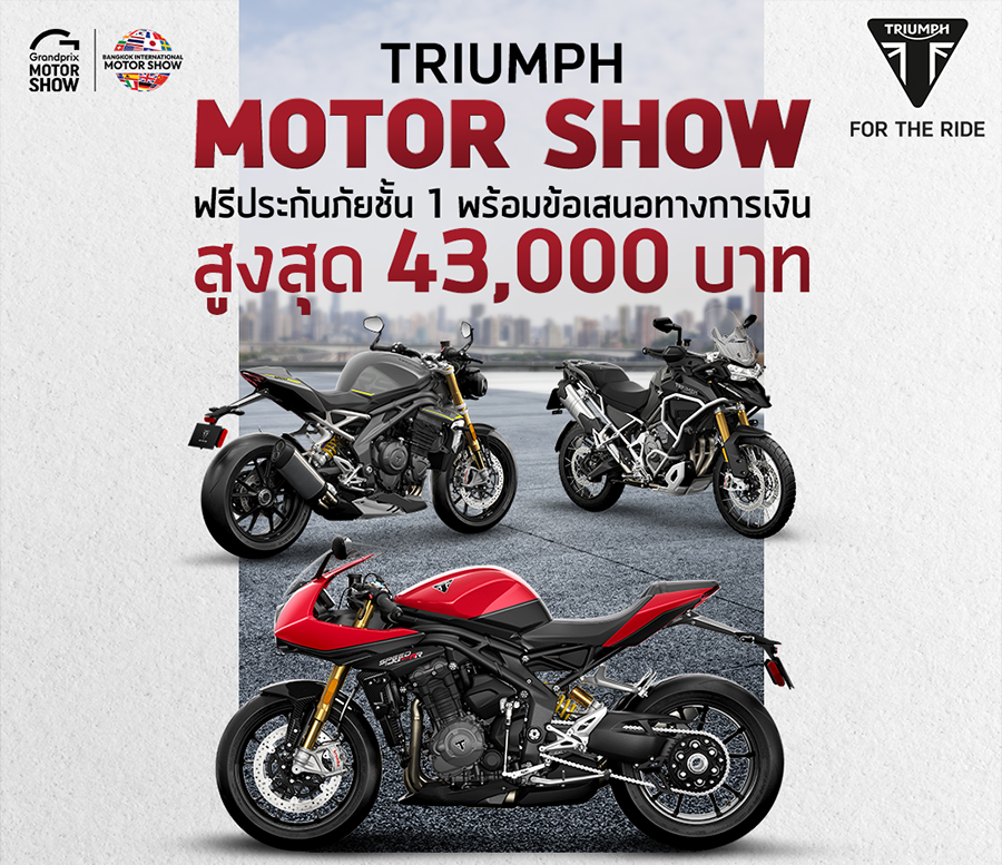 ไทรอัมพ์ เปิดโปรฯแรง จัดเต็มความพิเศษรับงาน Bangkok International Motor Show 2023 พร้อมข้อเสนอมากมายเมื่อออกรถ Triumph ในช่วงงาน ได้แก่