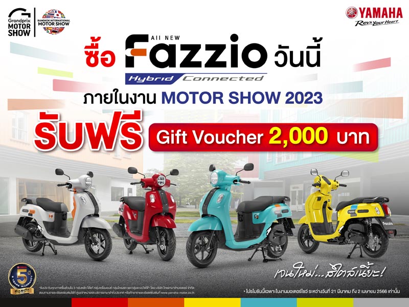 ซื้อ Yamaha Fazzio วันนี้ ภายในงาน Motor Show 2023 รับฟรี Gift Voucher 2,000 บาท