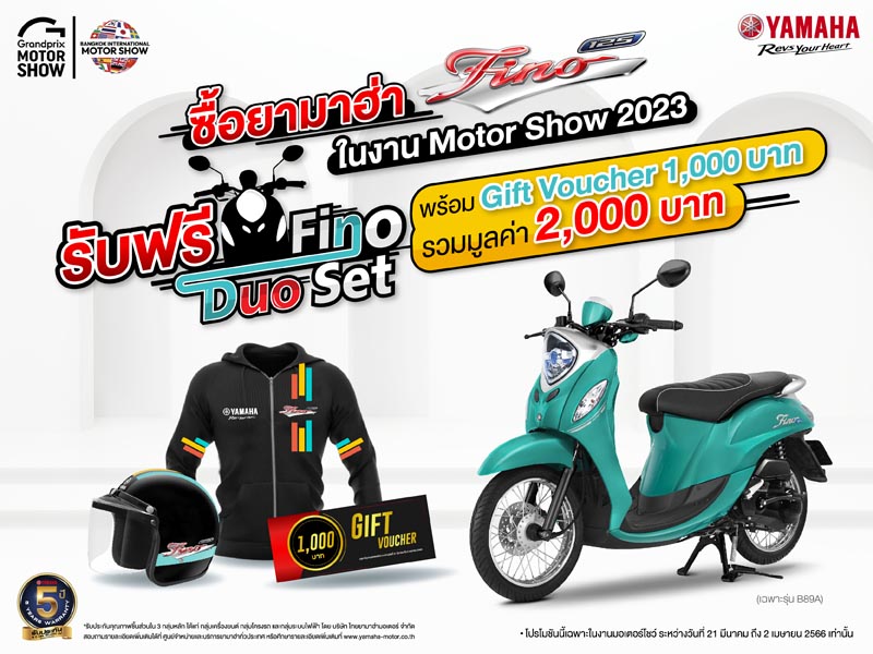 ซื้อ ยามาฮ่า ฟีโน่ รับฟรี Fino DUO Set พร้อม Gift Voucher 1,000 บาท รวมมูลค่า 2,000 บาท