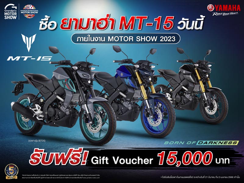 ซื้อ Yamaha MT-15 วันนี้ ภายในงาน Motor Show 2023 รับฟรี! Gift Voucher 15,000 บาท