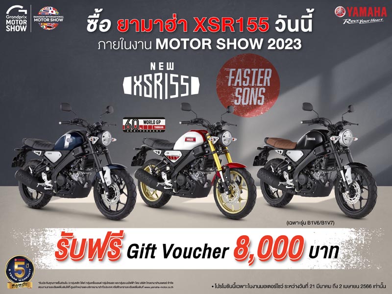 ซื้อ Yamaha XSR155R วันนี้ ภายในงาน Motor Show 2023 รับฟรี! Gift Voucher 8,000 บาท