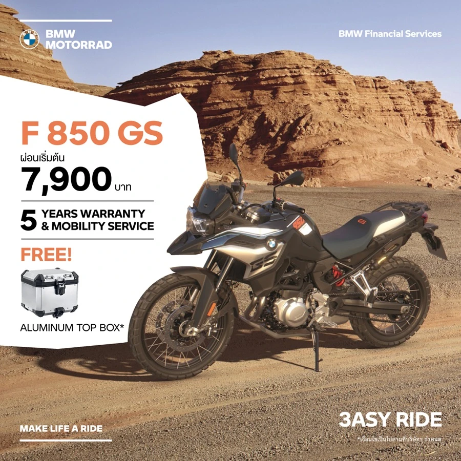 BMW Motorrad ชวนออกเดินทางต้อนรับเดือนกันยายน กับ IGNITE THE RIDE ข้อเสนอที่จะให้ให้คุณได้เป็นเจ้าของรถมอเตอร์ไซค์อย่างคุ้มค่า เช่น ฟรี! ประกันภัยชั้น 1*, ฟรี! BMSI 3 ปี*, ผ่อน 0% นานสูงสุด 5 ปี* และ วารันตีและบริการช่วยเหลือฉุกเฉิน นาน 5 ปี (*เงื่อนไขเป็นไปตามที่บริษัทฯ กำหนด)