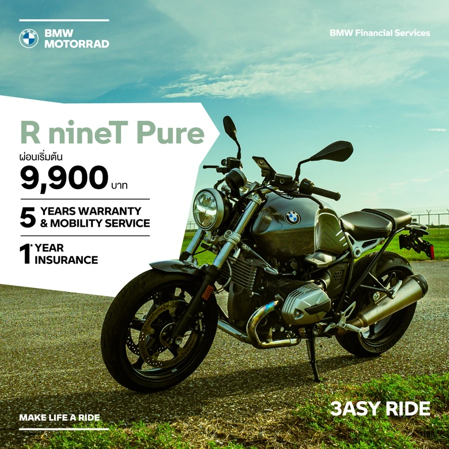 โรดสเตอร์สไตล์คลาสสิกกับเอกลักษณ์โดดเด่นของเครื่องยนต์ Boxer คือเคมีที่กลมกล่อม เป็นเจ้าของ The New R nineT Pure ในราคาเริ่มต้นที่ 739,000 บาท ดาวน์เริ่มต้น 147,800 บาท ผ่อนเริ่มต้น 9,900 บาท/เดือน พร้อมข้อเสนอสุดคุ้ม