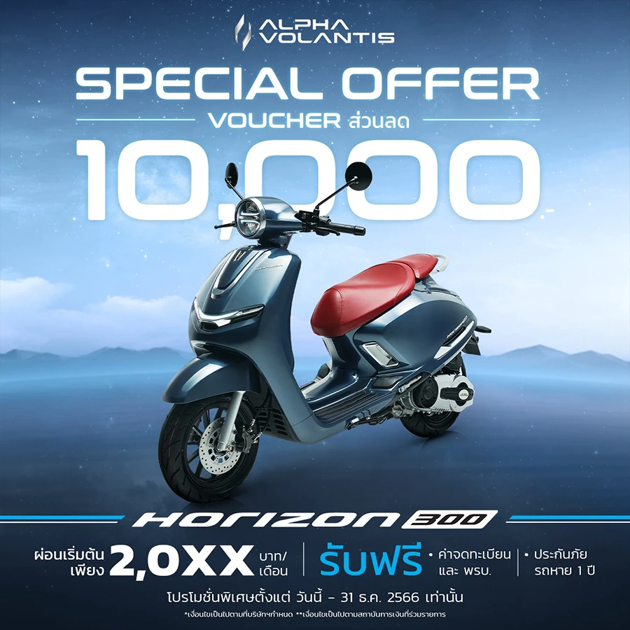 เป็นเจ้าของรถจักรยานยนต์ ALPHA VOLANTIS วันนี้ รับทันที VOUCHER ส่วนลด 10,000 บาท โปรโมชั่นพิเศษ ตั้งแต่วันนี้ – 31 ธันวาคม 2566 นี้