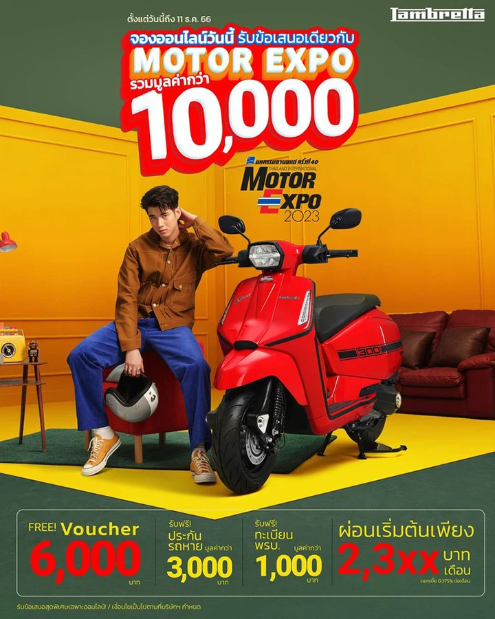 - โปรโมชั่น Voucher ดังกล่าว เฉพาะผู้ที่จองรถผ่านช่องทางออนไลน์ เว็บไซต์ https://booking.lambretta.co.th และใช้ได้สำหรับลูกค้าที่ ออกรถแลมเบรตต้าที่ร่วมรายการ ภายในวันที่ 31 ธ.ค. 66 เท่านั้น