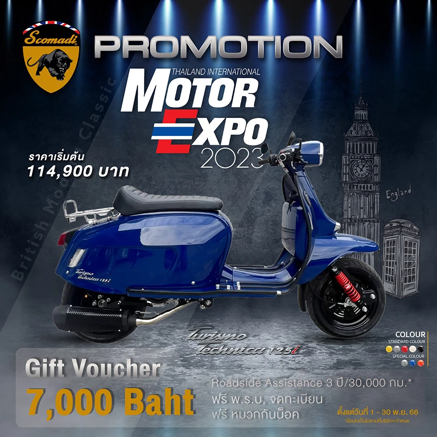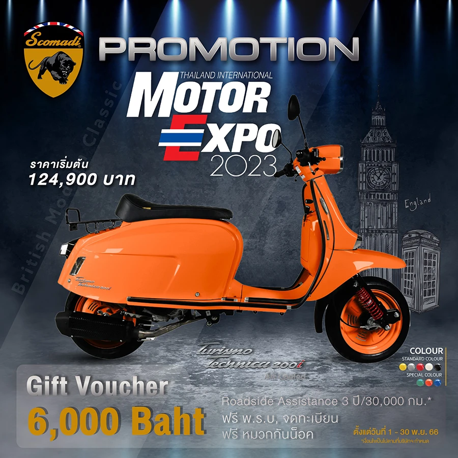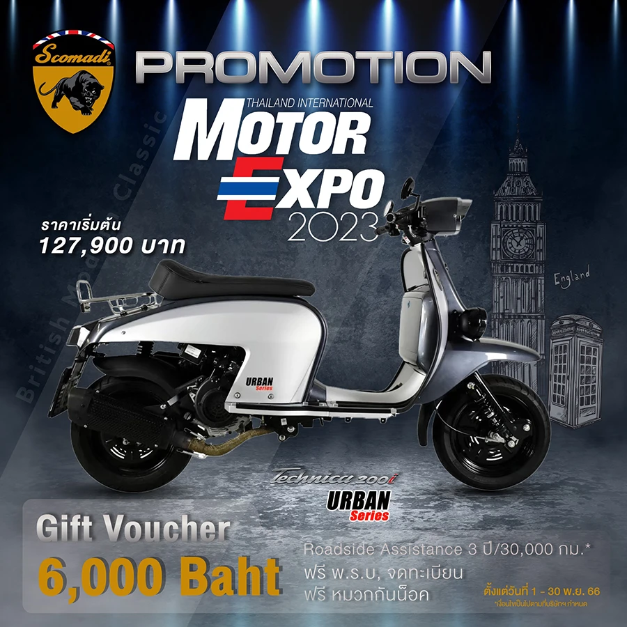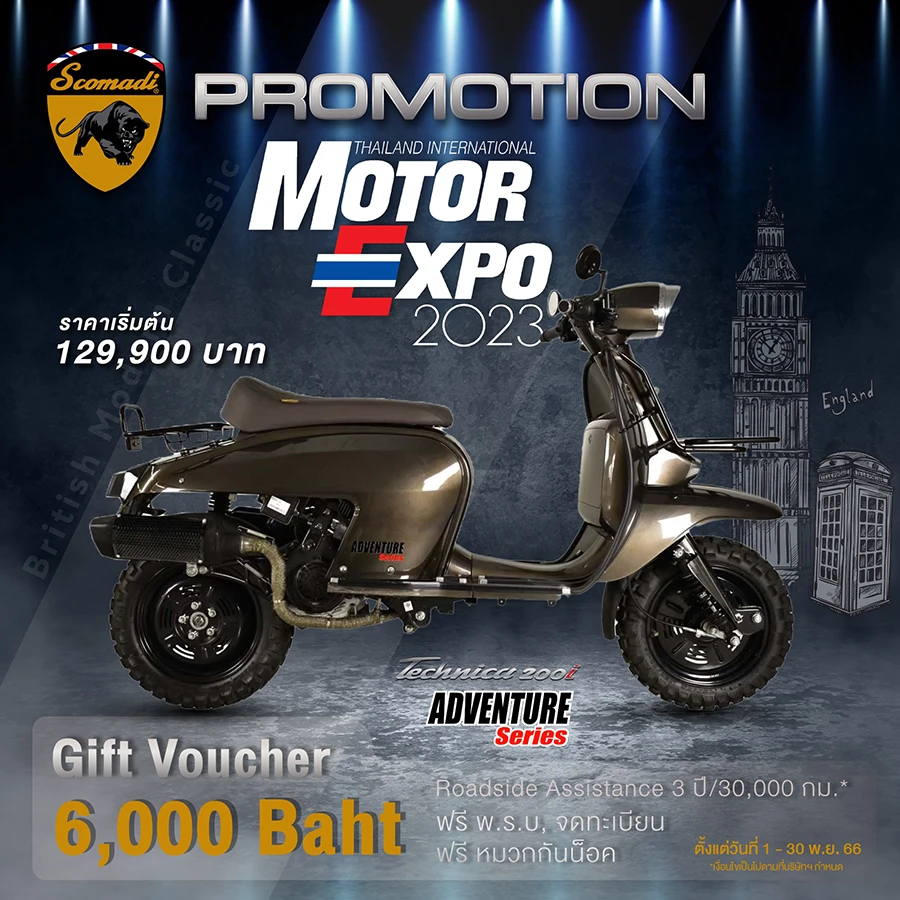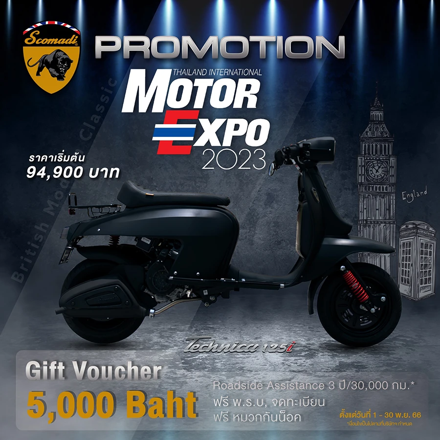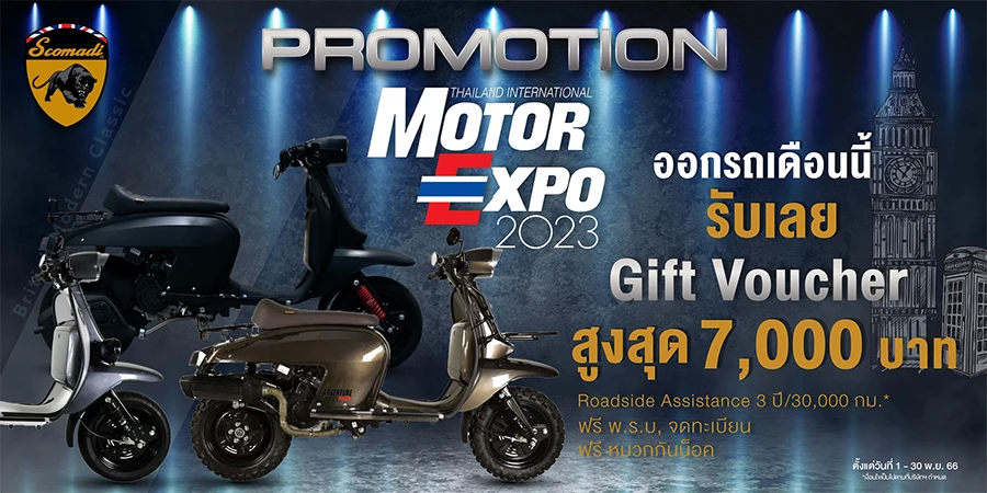 Scomadi จัดโปรโมชั่นส่งท้ายปี กับงาน Motor Expo 2023 ออกสโกมาดิในเดือนนี้ รับข้อเสนอโปรโมชั่นพิเศษสุด! ตั้งแต่วันที่ 1 - 30 พ.ย. 66