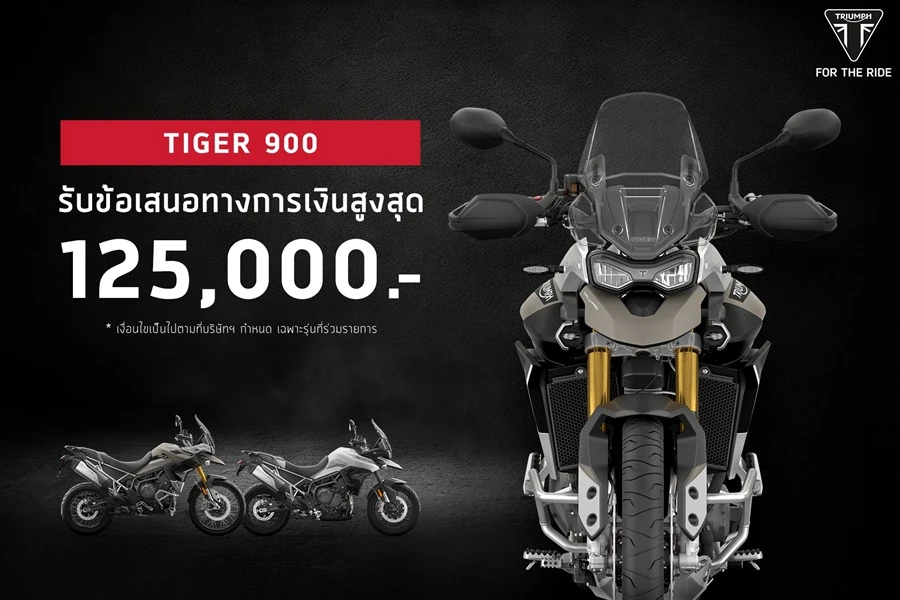 รถจักรยานยนต์ Triumph ในกลุ่ม Tiger 900 Family ที่รวมถึง Tiger Sport 850 รับข้อเสนอทางการเงินสูงสุด 125,000 บาท