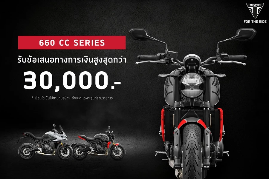 รถจักรยานยนต์ Triumph ในกลุ่มเครื่องยนต์ 3 สูบ 660 ซีซี ที่ประกอบไปด้วย Trident 660 และ Tiger Sport 660 รับข้อเสนอทางการเงินสูงสุดกว่า 30,000 บาท