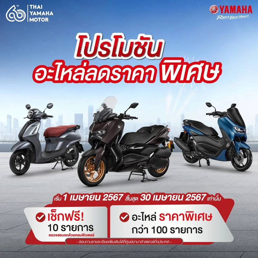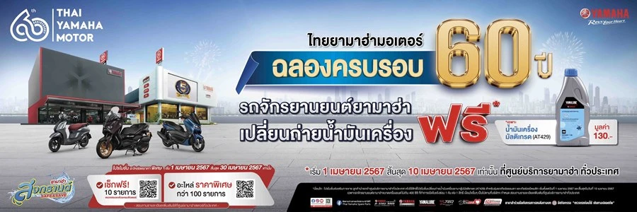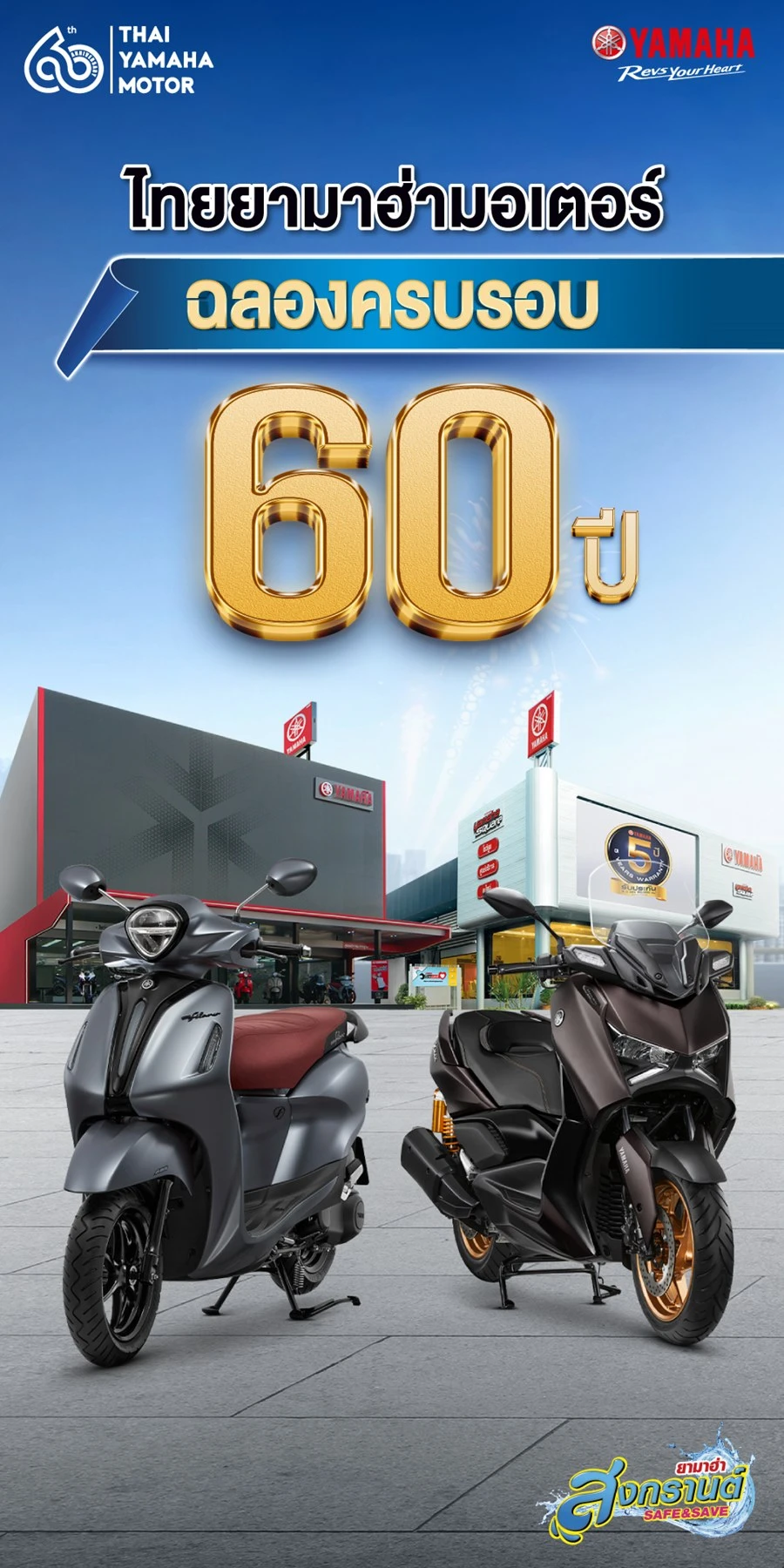 บริษัท ไทยยามาฮ่ามอเตอร์ จำกัด ฉลองครบรอบ 60 ปี จัดแคมเปญสุดพิเศษ “สงกรานต์ SAFE & SAVE” เตรียมรถให้พร้อมก่อนเดินทางวันสงกรานต์สำหรับลูกค้ารถจักรยานยนต์ยามาฮ่า