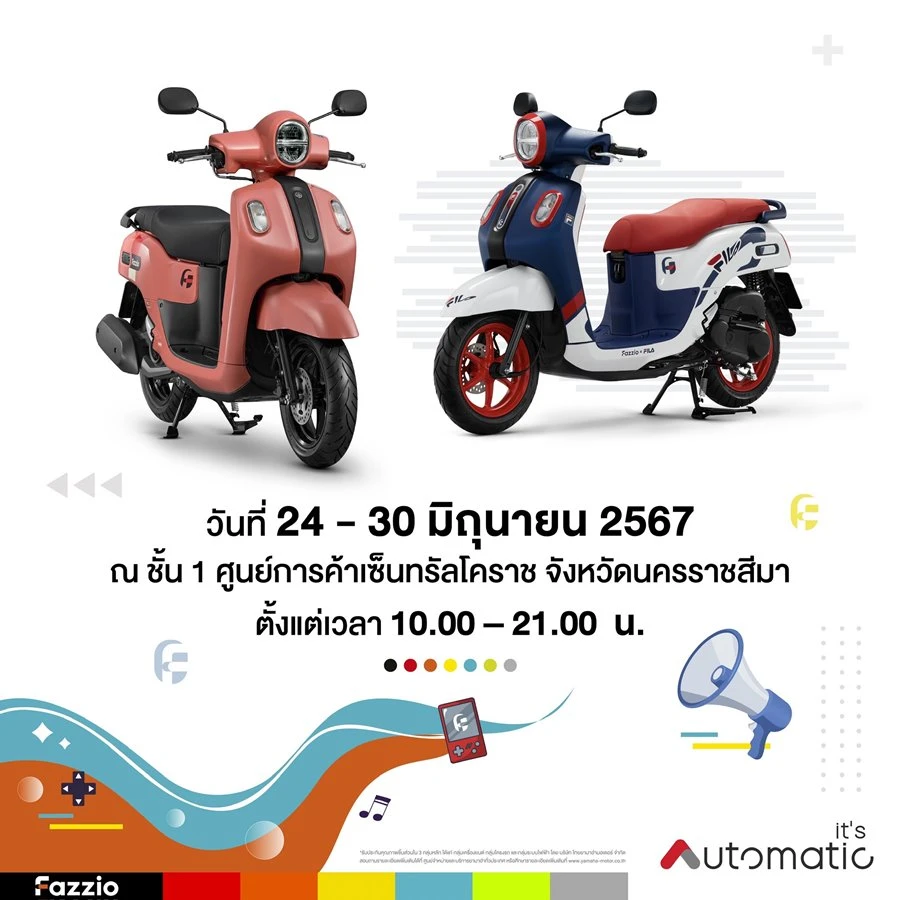 ข่าวดีของชาว GEN FAZZ สายแฟชั่น ยามาฮ่ายกขบวนความมันไปให้ชาวโคราชถึงที่ในงาน Yamaha FAZZIO Show Your Style งานดีๆของชาวมอเตอร์ไซค์ออโตเมติก มาค้นหารถออโตเมติกที่ใช่ในสไตล์คุณ ไม่ว่าจะเป็น ยามาฮ่าออโตเมติกสายแฟชั่นอย่าง ยามาฮ่าฟาซซิโอ้ และ ออโตเมติกขวัญใจมหาชนอย่าง ยามาฮ่าแกรนด์ ฟีลาโน่ ไฮบริด รวมทั้ง พรีเมี่ยมออโตเมติก อย่าง MAX Series นำโดย ยามาฮ่า เอ็กซ์แม็กซ์ และ ยามาฮ่า เอ็นแม็กซ์ และออโตเมติกรุ่นอื่นๆอีกเพียบ