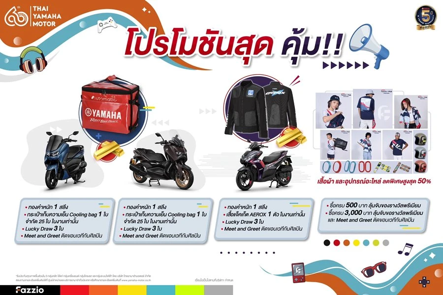 พิเศษสุดลุ้นโชคสร้อยทองคำ 7 วัน 7 เส้น มูลค่ากว่า 130,000 บาท เริ่มตั้งแต่วันที่ 24 ถึง 30 มิถุนายน 2567 นี้ ที่ห้างเซ็นทรัล โคราช ณ ลานโปรโมชัน 3 ชั้น 1 ชาว GEN แซ่บ และวัยรุ่นโคราชห้ามพลาด ติดตามข้อมูลเพิ่มเติมได้ทาง www.yamaha-motor.co.th
