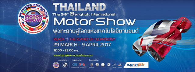 งาน บางกอก มอเตอร์โชว์ 2017 (ฺBangkok Motor Show 2017) หรือ The 38th Bangkok International Motor Show ติดตามข่าว รถยนต์เปิดตัวใหม่-พริตตี้ Pretty-โปรโมชั่น ได้ที่นี่ ในปีนี้งานจัดขึ้นระหว่างวันที่ 29 มีนาคม - 9 เมษายน 2560 ณ อาคารชาเลนเจอร์ 1 - 3 อิมแพค เมืองทองธานี ภายใต้คอนเซปต์ "พุ่งทะยานสู่โลกแห่งเทคโนโลยียานยนต์" หรือ "Reach to the Planet of Technology" การพัฒนาอย่างไม่หยุดยั้งของเทคโนโลยีนวัตกรรมยานยนต์ สะกดสายตาทุกคู่ที่จับจ้อง ด้วยเส้นสายรูปแบบ สรีระที่ลงตัวเชิญชวนให้สัมผัส กระตุ้นอารมณ์แห่งความเร้าใจให้พุ่งทะยานสู่โลกยนตกรรม งานบางกอก อินเตอร์เนชั่นแนล มอเตอร์โชว์ ครั้งที่ 38 งานแสดงยนตรกรรมที่ปลุกอารมณ์แห่งความเร้าใจในโลกยนตรกรรม คาดเงินสะพัดภายในงานกระตุ้นเศรษฐกิจประเทศไม่ต่ำกว่า 4 หมื่นล้านบาท