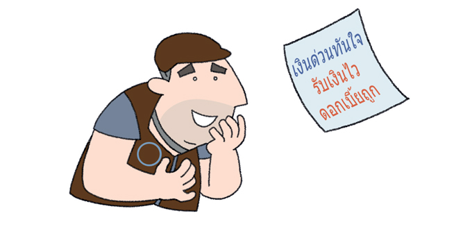 "เงินด่วนทันใจ รับเงินไวภายใน 5 นาที ดอกเบี้ยถูก ติดต่อเจ๊เคียว โทร. XXX"