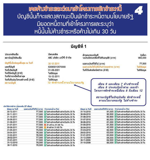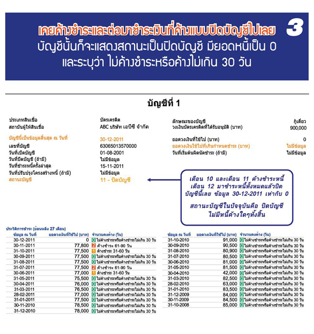 และเมื่อวันที่ 19 กันยายน 2557 ที่ผ่านมา ทางคณะกรรมการคุ้มครองข้อมูลเครดิต ได้ประกาศลงในราชกิจจานุเบกษา เรื่องอายุข้อมูลในการประมวลผลข้อมูล การประมวลผลข้อมูลของบริษัทข้อมูลเครดิต และการส่งข้อมูลของสมาชิก โดยระบุว่า อายุข้อมูลในการประมวลผลของบริษัทข้อมูลเครดิต มีกำหนดไม่เกิน 3 ปี นับแต่วันที่บริษัทข้อมูลเครดิตได้รับข้อมูลจากสถาบันการเงินที่เป็นสมาชิก และกรณีที่ลูกหนี้มีการผิดนัดชำระหนี้สินเชื่อ ให้สถาบันการเงินที่เป็นสมาชิกนำส่งข้อมูลของลูกหนี้ต่อไปเป็นเวลา 5 ปี โดยให้เริ่มนับระยะเวลา 5 ปี ในวันถัดจากวันที่ลูกหนี้ผิดนัดชำระหนี้ครบ 90 วัน และกรณีที่ข้อมูลของลูกหนี้อยู่ระหว่างการประมวลผลของบริษัทข้อมูลเครดิตมีอายุของข้อมูลเกินกว่า 8 ปี นับแต่วันที่ลูกค้าผิดนัดชำระหนี้เกิน 90 วัน ให้บริษัทข้อมูลเครดิตหยุดการประมวลผลข้อมูล (คลิกเพื่อดูข้อมูลเพิ่มเติม)