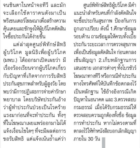 ข้อแนะนำเพิ่มเติม : ศูนย์พิทักษ์สิทธิผู้บริโภค มูลนิธิเพื่อผู้บริโภค (มพบ.)
