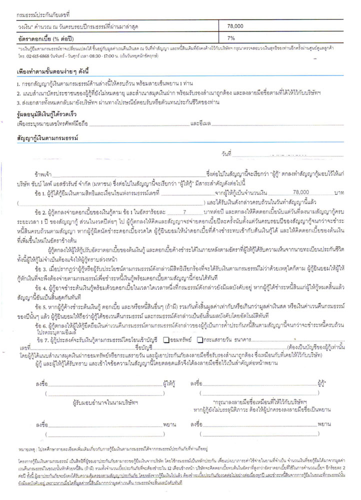 ตัวอย่างสัญญากู้เงินตามกรมธรรม์