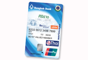 กรุงเทพ | ![]() บัตรบีเฟิสต์ สมาร์ท ทีพีเอ็น แรบบิท ศิริราช | วงเงินสูงสุด 200,000 บาท | วงเงินสูงสุด 5,000 บาท/ครั้ง | ไม่มี |