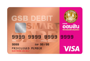![]() บัตรออมสิน วีซ่า เดบิต สมาร์ท ไลฟ์ | วงเงินสูงสุด 500,000 บาท | วงเงินสูงสุด 20,000 บาท/ครั้ง | ไม่มี |