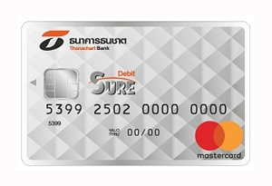 ธนชาต | ![]() บัตรเดบิตชัวร์ | วงเงินสูงสุด 100,000 บาท | วงเงินสูงสุด 5,000 บาท/ครั้ง | ไม่มี |