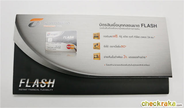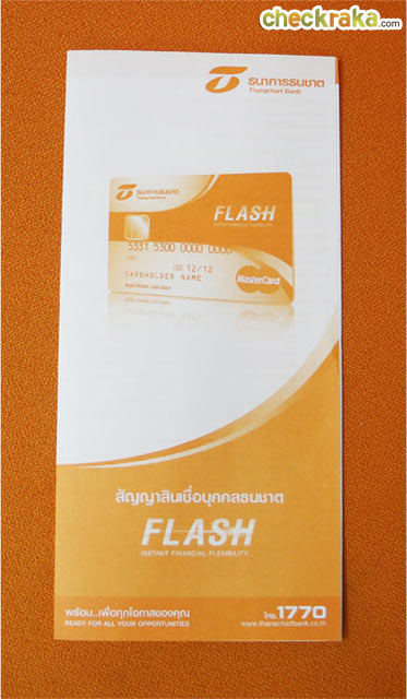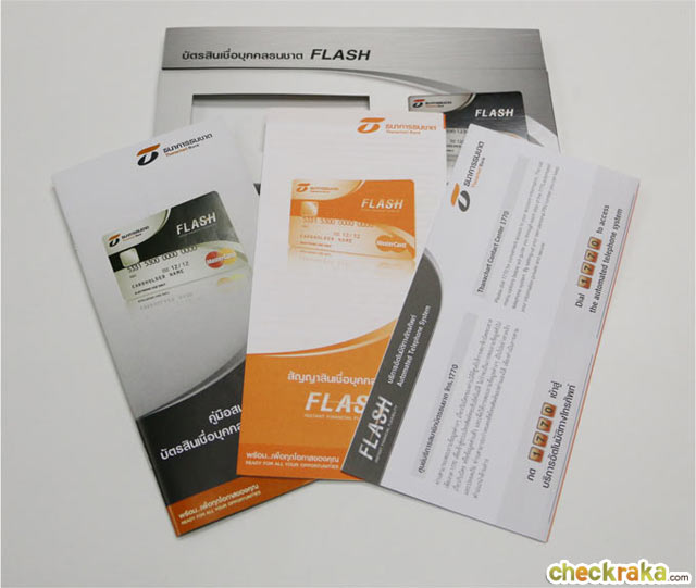 ด้านในของซองจะประกอบไปด้วย คู่มือสมาชิกบัตรสินเชื่อบุคคลธนชาต FLASH PLUS, สัญญาสินเชื่อบุคคลธนชาต และใบนำส่งบัตรสินเชื่อบุคคลธนชาต FLASH PLUS