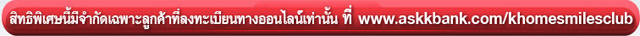 สอบถามข้อมูลเพิ่มเติม โทร. 0-2888-8888 หรือ www.askkbank.com/khomesmilesclub