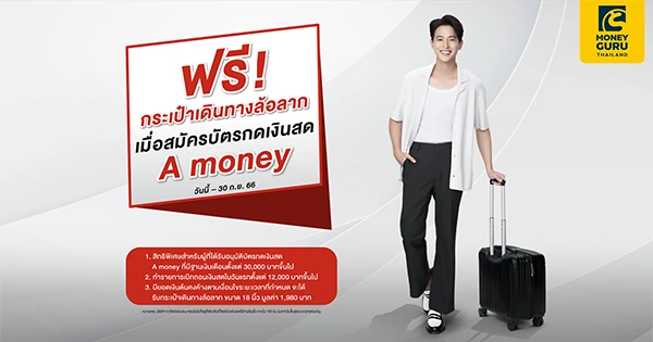 >> สิทธิพิเศษสำหรับผู้ที่ได้รับอนุมัติบัตรกดเงินสด A money ที่มีฐานเงินเดือนตั้งแต่ 30,000 บาทขึ้นไป รับฟรี กระเป๋าเดินทางล้อลาก