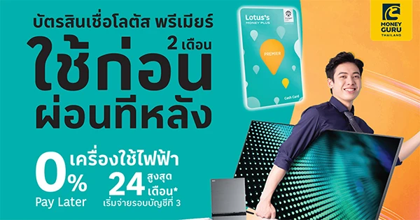 >> 0% Pay Later ใช้ก่อนผ่อนทีหลังเมื่อซื้อเครื่องใช้ไฟฟ้าที่โลตัสผ่านบัตรสินเชื่อโลตัส พรีเมียร์
