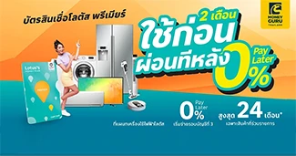 | โลตัส มันนี่ (Lotus Money) บัตรสินเชื่อโลตัส พรีเมียร์ "0% Pay Later ใช้ก่อนผ่อนทีหลัง" ผ่อนเครื่องใช้ไฟฟ้า 0% นานสูงสุด 24 เดือน ที่โลตัส ดูรายละเอียดโปรโมชัน | ยูเมะ พลัส (Umay+) บัตรกดเงินสดยูเมะพลัส "ยูเมะพลัสแอปฯ จ่ายดี ลุ้นทอง ปี 3" ลุ้นรับทองคำแท่ง 144 รางวัล มูลค่ารวมกว่า 3 ล้านบาท |