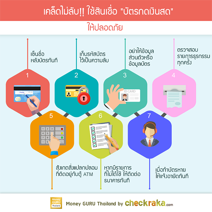 - เราควรเก็บรักษารหัสบัตรกดเงินสดที่ได้มาไว้เป็นความลับ ไม่ให้ใครรู้