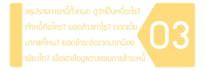 3. รวบรวมและสรุปยอดหนี้พร้อมดอกเบี้ยที่ต้องเสียที่มีอยู่ทั้งหมด