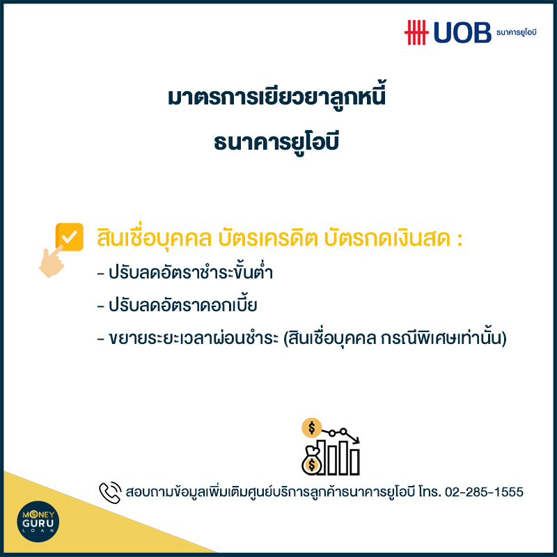 ลูกค้าสามารถแจ้งความประสงค์ในการขอรับความช่วยเหลือนี้ได้ โดยติดต่อศูนย์บริการลูกค้าธนาคารยูโอบี โทร. 02-285-1555