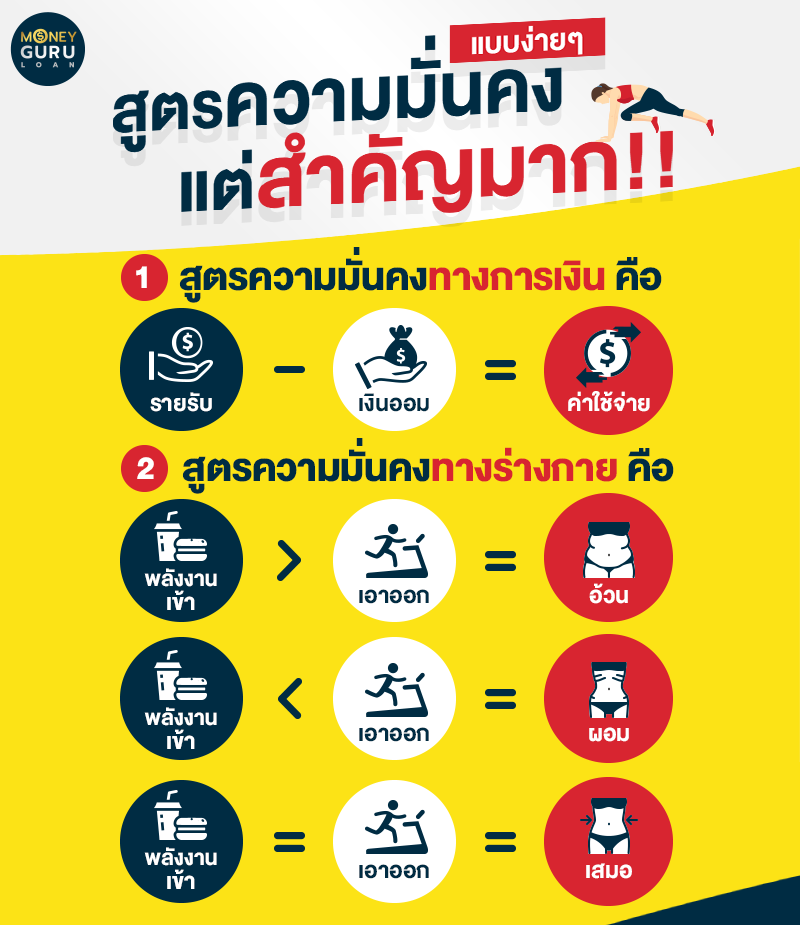 หลักเกณฑ์ง่ายๆ ที่จะทำให้เราถึงเป้าหมายที่ตั้งใจไว้นั่นก็คือ "มุ่งมั่นและตั้งใจจริงในการเก็บออม" ไม่ว่าจะเป็นการออมเงิน หรือออมสุขภาพร่างกายให้แข็งแรงสมบูรณ์ ซึ่งไม่ใช่เรื่องยากเลย โดยในส่วนของวิธีการออมเงินนั้น หัวใจหลักก็คือ "ออมก่อนใช้" และหัวใจหลักในส่วนของสุขภาพร่างกายก็คือ "พลังงานที่เอาเข้าต้องน้อยกว่าหรือเท่ากับออก" นั่นเอง