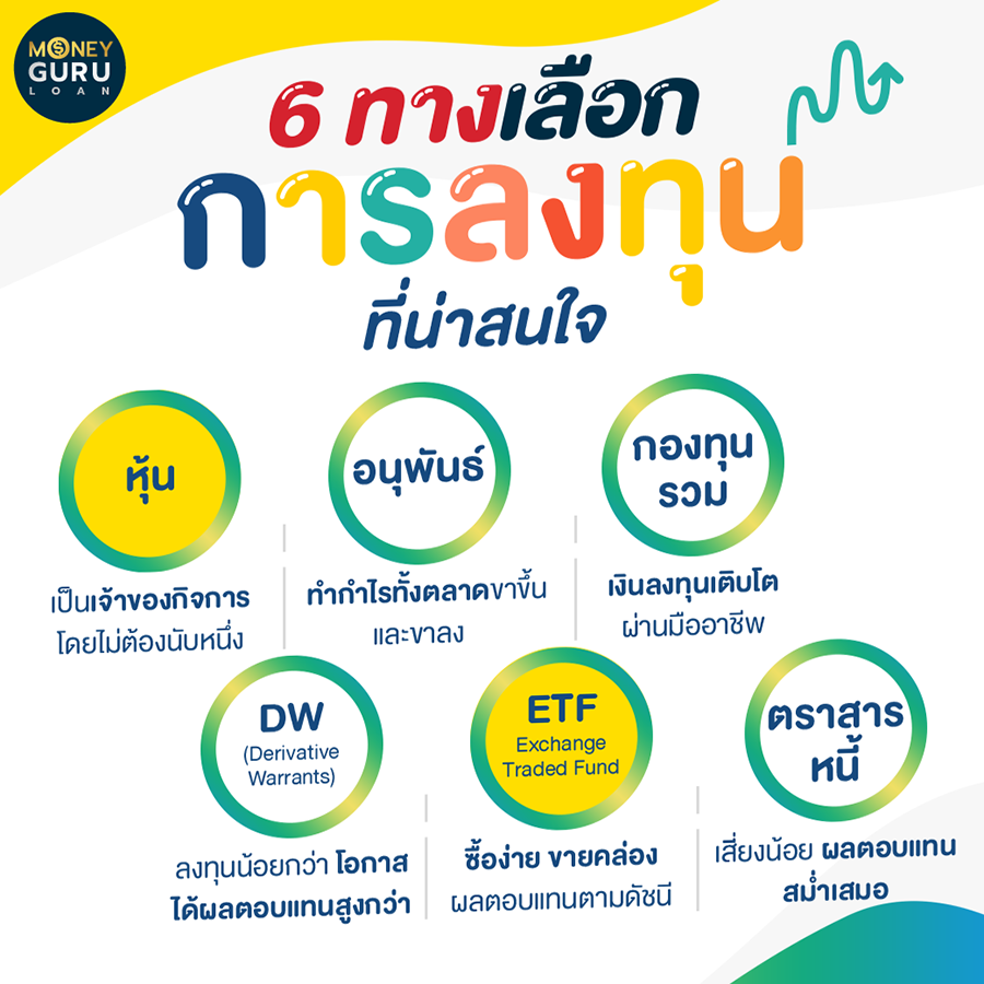 ทางเลือกการลงทุน...มีกี่แบบ?ถ้าพูดถึงเรื่องการออมแล้ว เชื่อว่าหลายคนคงต้องนึกถึง "เงินฝากธนาคาร" แต่ปัจจุบันการฝากเงินไว้กับธนาคารนั้น ผลตอบแทนหรือดอกเบี้ยที่ได้รับนั้นน้อยนิดเหลือเกิน การที่เราจะมีเงินออมไปถึงเป้าหมายที่ตั้งไว้ก็อาจจะต้องใช้เวลายาวนานมาก ดังนั้น การลงทุน จึงเป็นอีกหนึ่งทางเลือกสำหรับผู้ที่ต้องการได้รับผลตอบแทนที่มากขึ้นในระยะเวลาที่สั้นลงด้วย ซึ่งทางเลือกของการลงทุนในปัจจุบันก็มีอยู่มากมายเช่นกัน วันนี้ทางทีมงาน CheckRaka จะขอเอาตัวเลือกการลงทุนที่แบ่งเป็น 6 ประเภทใหญ่ๆ มาให้เพื่อนๆ ได้รู้จักตามนี้ค่ะ