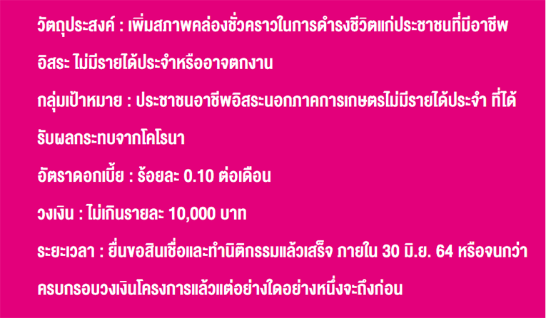 สินเชื่อเพื่อเป็นค่าใช้จ่าย สำหรับผู้มีอาชีพอิสระ/ผู้มีรายได้ประจำที่ได้รับผลกระทบจากไวรัสโควิด-19