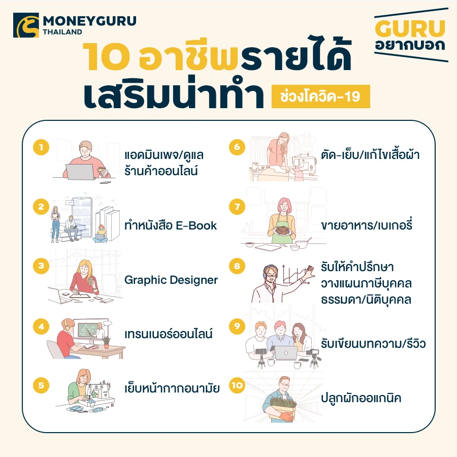 GURU อยากบอก!! 10 อาชีพเสริมสุดเจ๋ง ทางเลือกเพิ่มรายได้ในช่วงโควิด-19