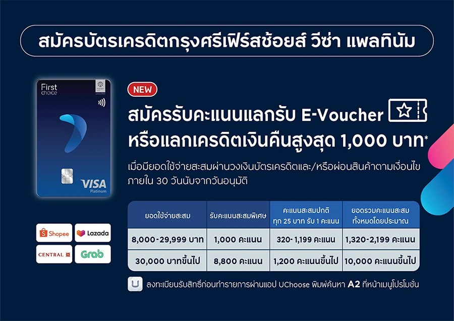 2. สมัครบัตรเครดิตกรุงศรีเฟิร์สช้อยส์ วีซ่า แพลทินัม