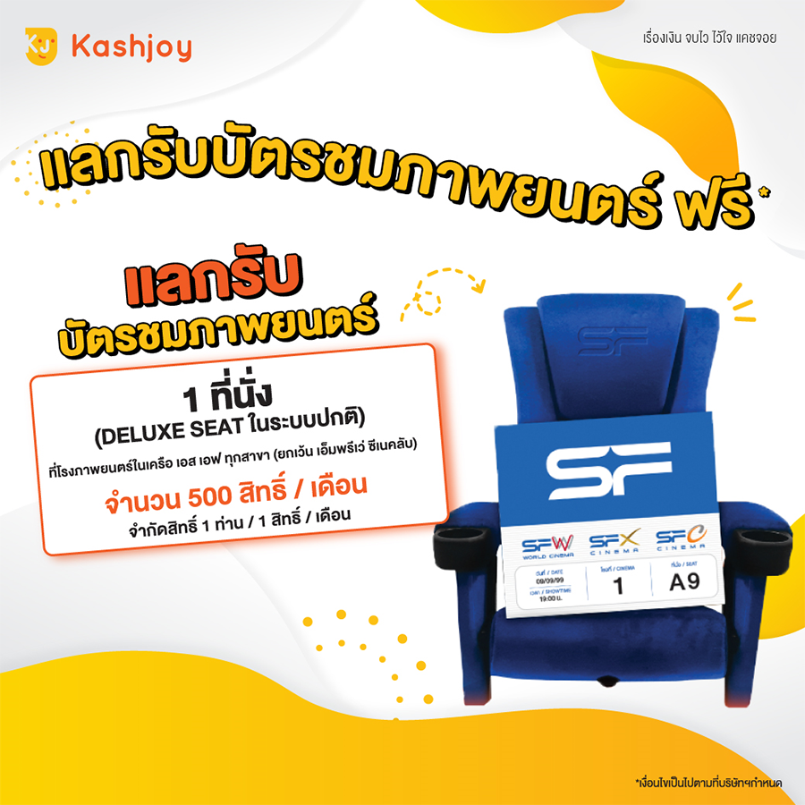WoW ที่ 1 พิเศษ! สำหรับสมาชิกบัตรกดเงินสดแคชจอย อีซี่ รับประสบการณ์เหนือระดับ แลกรับบัตรชมภาพยนตร์ Deluxe Seat 1 ใบ