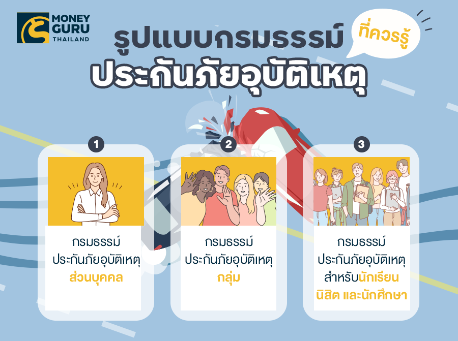 "ประกันภัยอุบัติเหตุ" ในปัจจุบันสามารถแบ่งออกได้เป็น 3 กรมธรรม์ คือ