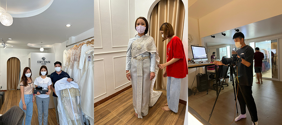 ในช่วงโควิดแรกๆ ลูกค้าส่วนใหญ่กลัวโควิดเลยมีการขอเลื่อนคิวถ่ายออกไปเยอะพอสมควร ส่วนคนคิดว่าสถานการณ์ไม่ได้รุนแรงมากนัก และมีมาตรการป้องกันเพียงพอก็มาถ่ายภาพเก็บไว้ รอสถานการณ์โควิดดีขึ้นเมื่อไหร่ ก็จะสามารถจัดงานได้เลย ทางร้านก็โดนผลกระทบไม่มากนัก ประกอบกับต้องการรีโนเวทร้านด้วย ก็เลยก็ถือโอกาสช่วงนั้นปรับปรุงร้านเพิ่มเติมเลย พอใกล้จะเสร็จช่วงนั้นเป็นช่วงที่โควิดเริ่มจะซาพอดีทางร้านก็มีจัดแพคเกจแบบจองข้ามปีกันเลยค่ะ