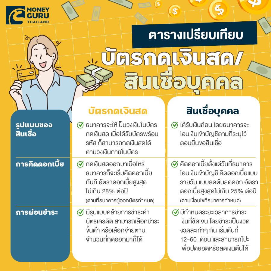ตารางเปรียบเทียบบัตรกดเงินสด กับสินเชื่อบุคคล