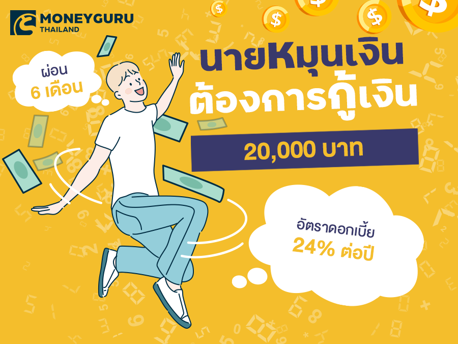 ตัวอย่าง นายหมุนเงิน ต้องการกู้เงิน 20,000 บาท โดยมีระยะวลาผ่อนชำระ 6 เดือน อัตราดอกเบี้ยเงินกู้อยู่ที่ 24% ต่อปี
